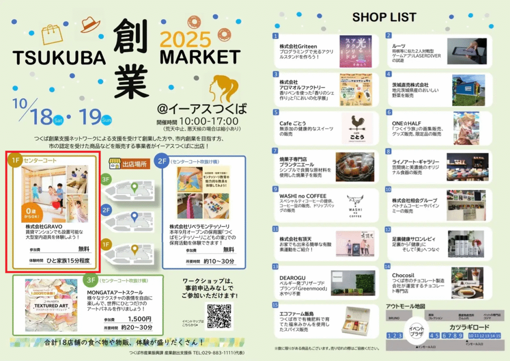 2025年10月18日(土)・19日(日)にイーアスつくばで開催される 「Tsukuba 創業 Market 2025」 に出展いたします!
